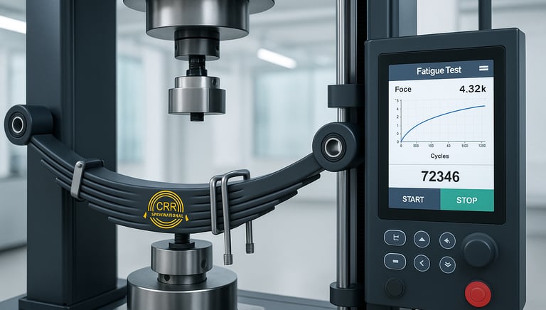 Our fatigue life testing simulates millions of load cycles to assess long-term durability. This ensures each leaf spring can withstand repeated stress without cracking, sagging, or losing performance.